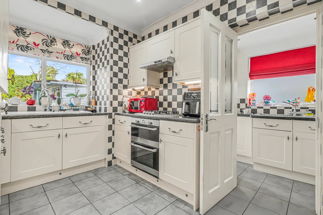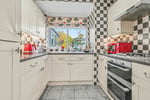 Comprises base level work surfaces with inset sink and mixer tap. Space and plumbing for washing machine and dishwasher. Double glazed window to side aspect. Double glazed door to rear.