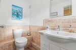 A part tiled room comprising low level W.C. and wash hand basin with storage beneath. Obscure double glazed window to front aspect.