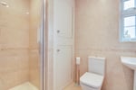 Comprises low W.C. and wash hand basin with mixer taps. Built in cupboard housing wall mounted boiler for hot water and gas central heating. Tiled floor. Obscure double glazed window to side aspect.