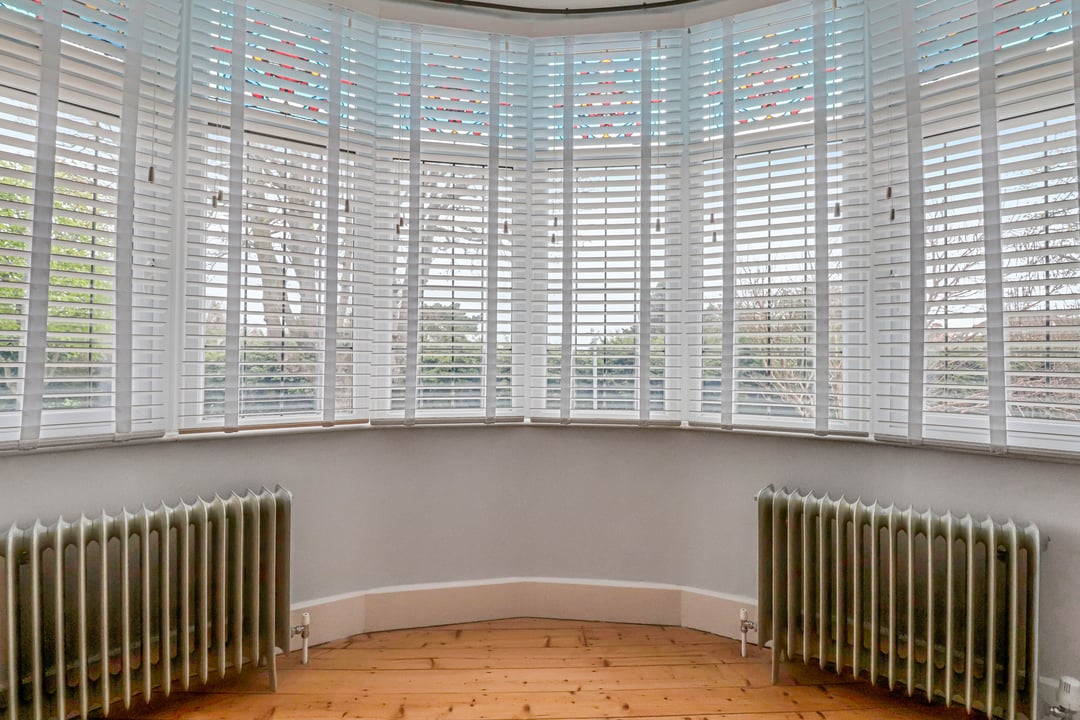 Double glazed corner window to front and side aspects. Exposed wood floorboards.