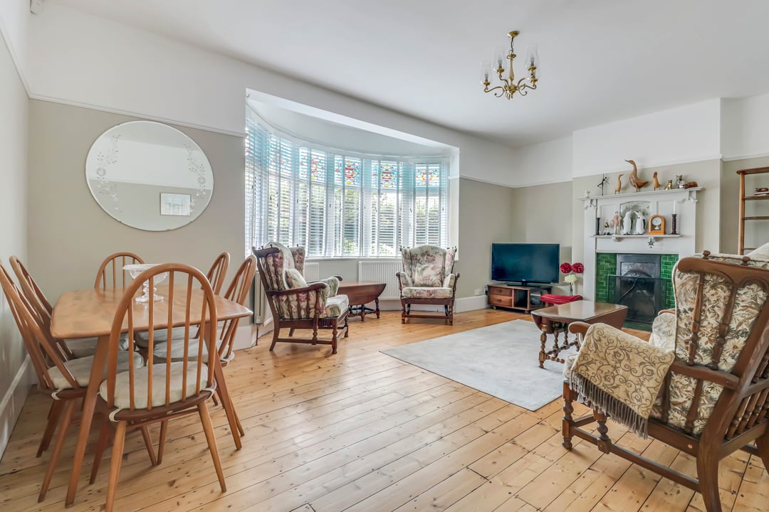 Double glazed bay window to front aspect with stained glass upper sections. Exposed wood floorboards. Feature fireplace.