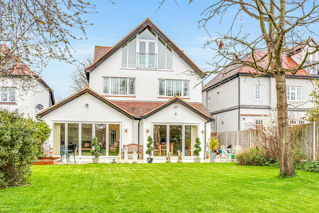 The landscaped rear garden commences from the back of the property with a large patio area. The remainder is laid mostly to lawn and is complemented by the established planted borders. Timber garden sheds to remain. Outside lighting. Cold water tap. Gated side access to front.