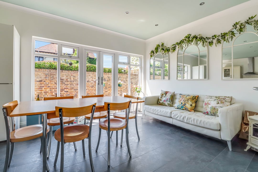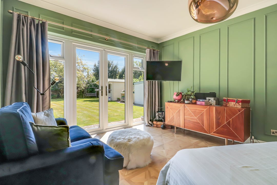 Double glazed French doors with full height double glazed windows to rear aspect. Oak effect wood floor.