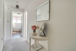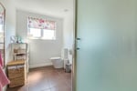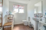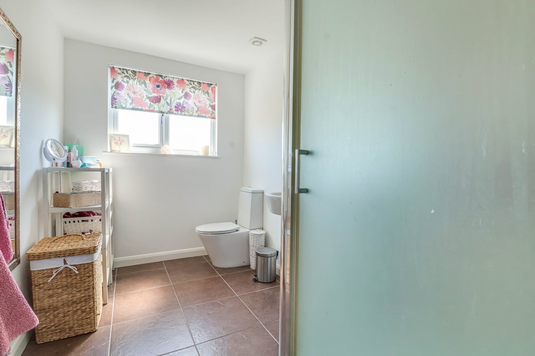 A part tiled room comprising corner shower cubicle, low level W.C. and pedestal wash hand basin. Chrome heated towel rail. Double glazed window to rear aspect.