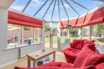 A double glazed unit with French doors that open onto the rear garden; perfect for entertaining. Fitted blinds. Solid wood floor.