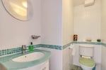 A fully tiled room comprising low level W.C. and vanity wash hand basin with storage beneath.