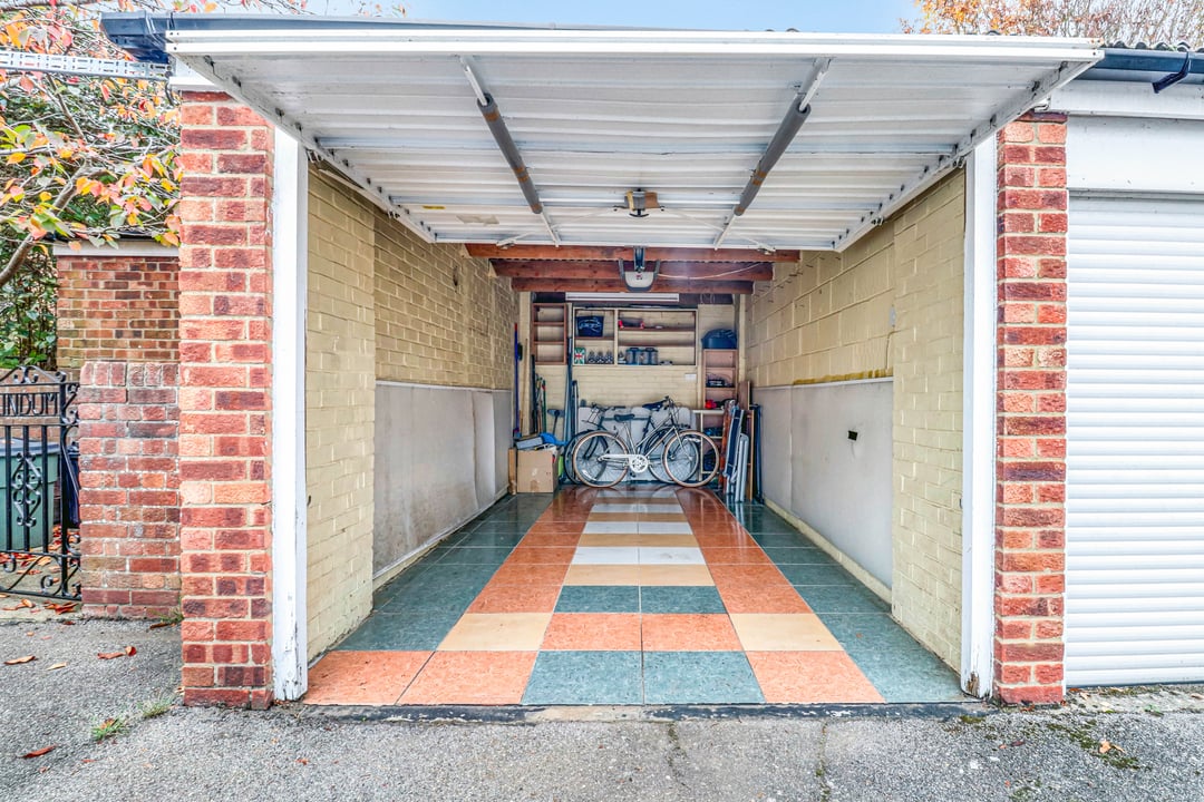 'Up & over' door to front. Tiled floor. Light and power connected. Approached via extensive driveway with further parking bays.