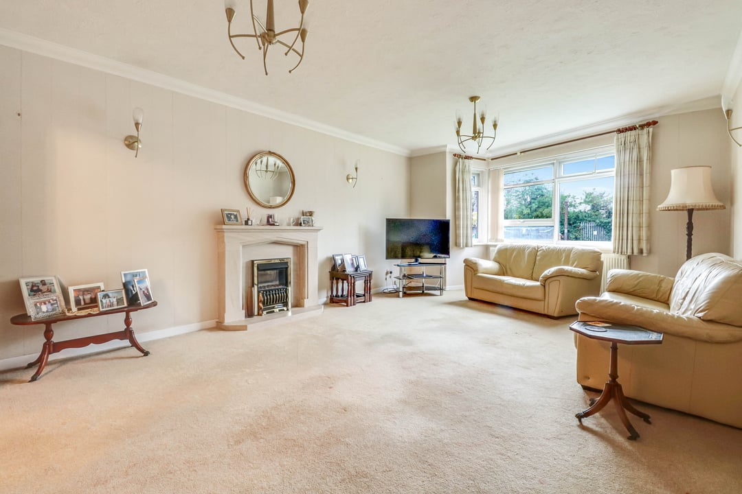 Double glazed bay window to side aspect. Feature fireplace with inset fire basket and natural stone surround.
