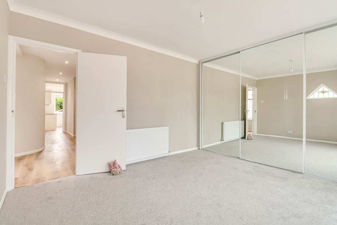 A dual aspect room with a double glazed bay window to the front and a single glazed window to the side. This room benefits from fitted wardrobes with mirror fronted doors.