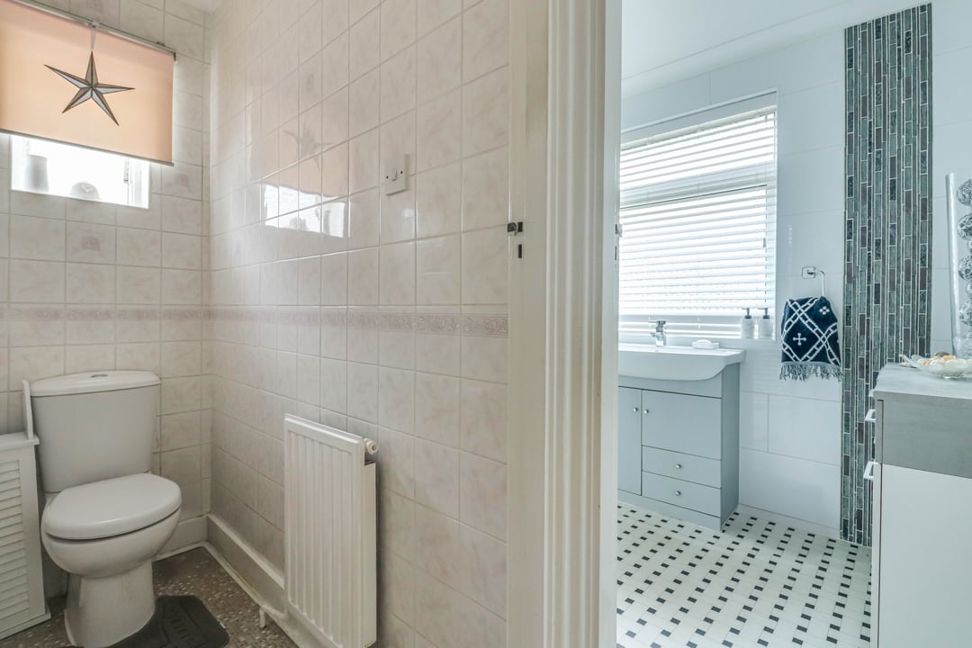 A part tiled room comprising low level W.C. Obscured double glazed window to side aspect.