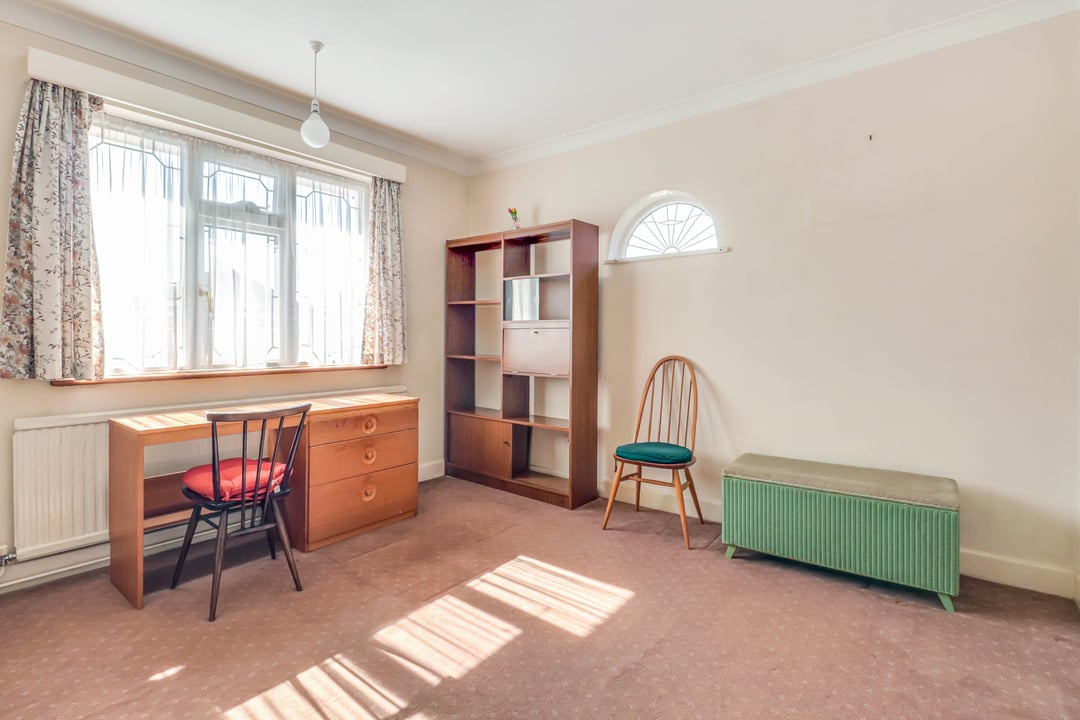 A dual aspect room with a double glazed window to the front and a feature stained glass window to the side.
