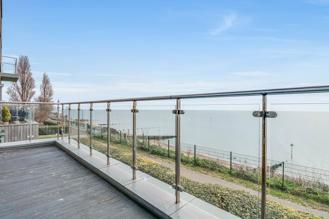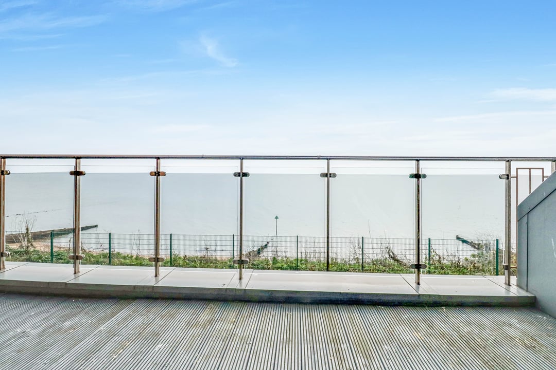 A part covered balcony affording panoramic views across the Thames Estuary and beyond. Space for table and chairs / recliners. Glass balustrade. The balcony links directly with the lounge / diner and also :