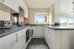 The kitchen comprises a range of eye and base level storage units complemented by the rolled edge work surfaces with inset sink and mixer tap. Matching upstands. Integrated oven and four burner gas hob with extractor over. Integrated microwave oven and slim line dishwasher. Space and plumbing for washing machine. Space for fridge/freezer. Cupboard housing boiler. Tiled floor. Double glazed window to front aspect.