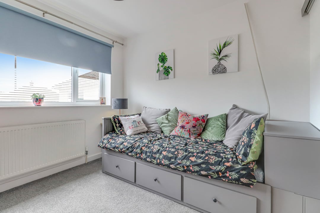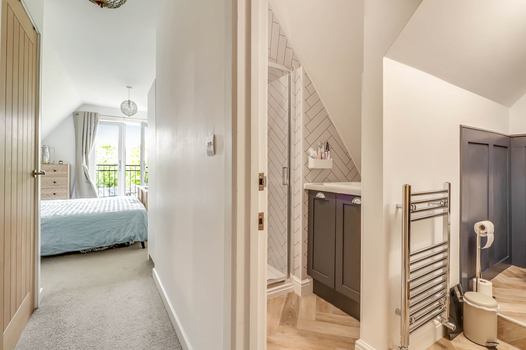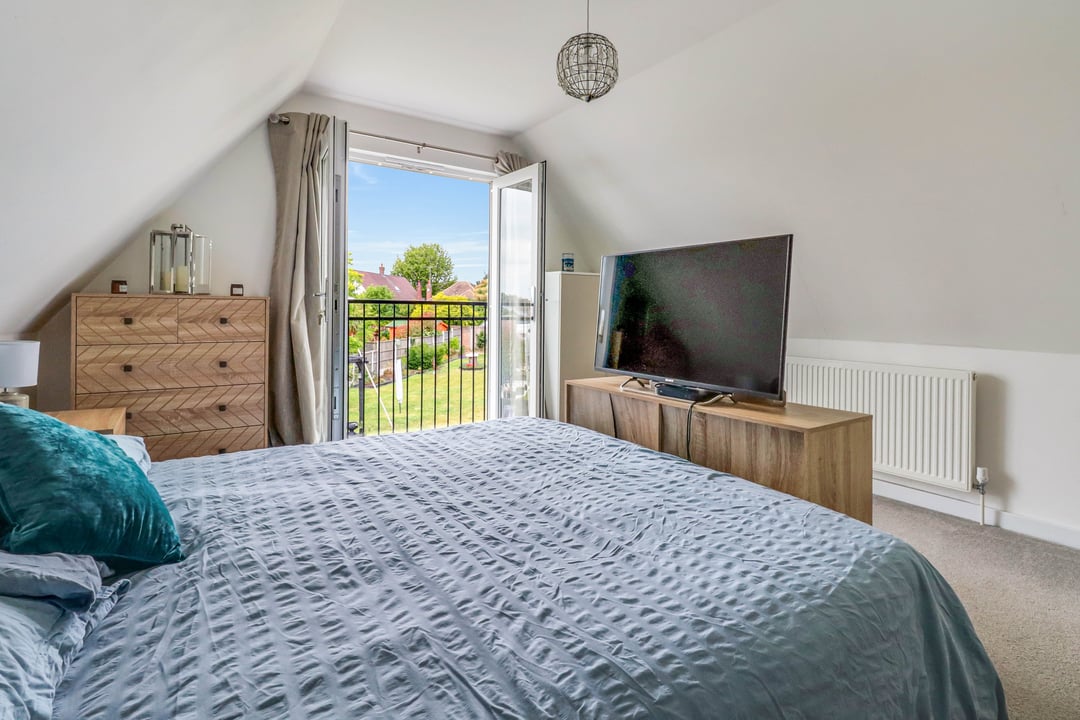 Double glazed French doors open onto Juliette balcony benefiting from views over the garden. Built-in storage cupboard.