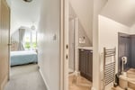A part tiled room comprising recessed shower enclosure, low level W.C. with concealed cistern and wash hand basin set in large storage unit. Obscured double glazed window to side aspect. Extractor fan.