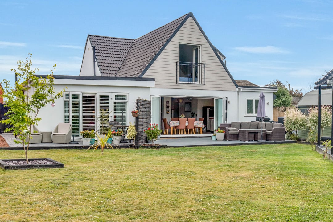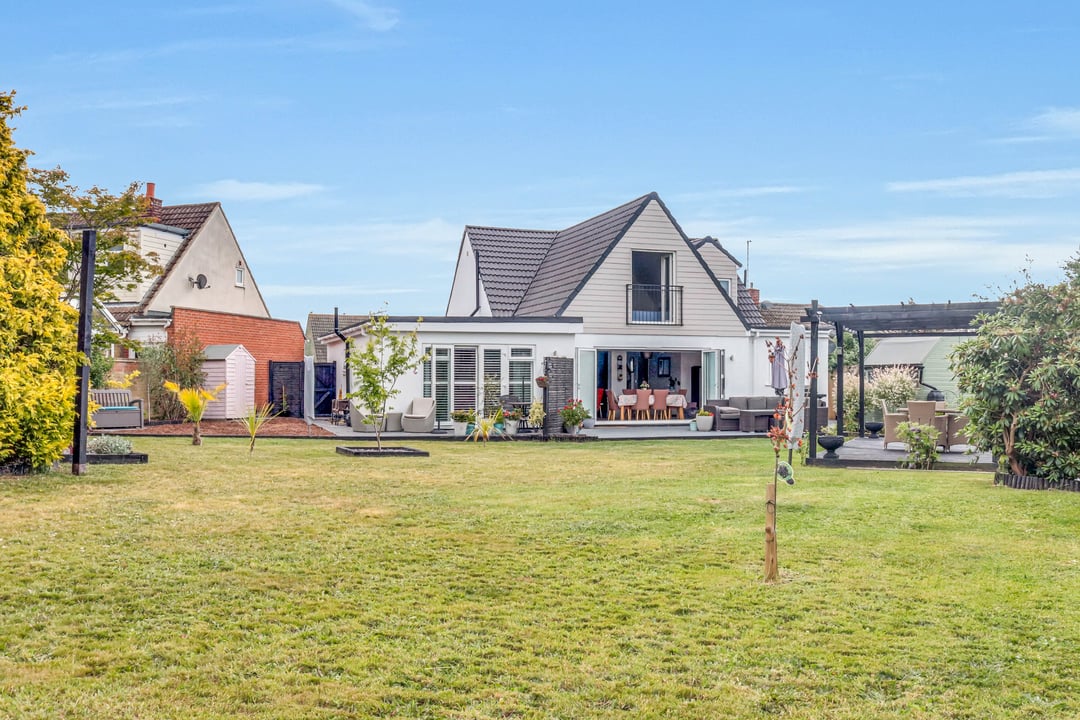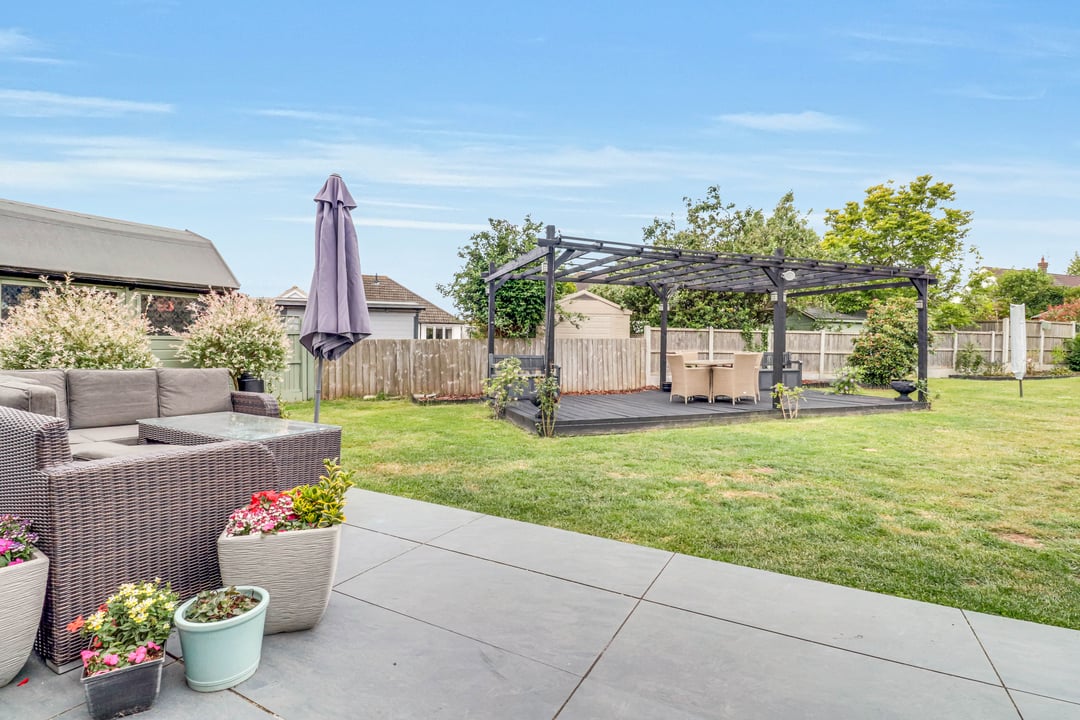 The property boasts a large WEST backing garden that commences from the rear of the property with a patio entertaining area. The remainder is laid mostly to lawn and is complemented by the established planted borders. There is a large raised deck entertaining area with a Pergola providing shade. Timber storage shed to remain. Gated side access to front. Outside power and light. There is also a composite storage shed that will remain (11' x 8').