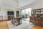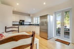 Space for a family dining table. Solid wood Herringbone flooring. Sliding patio doors link with :