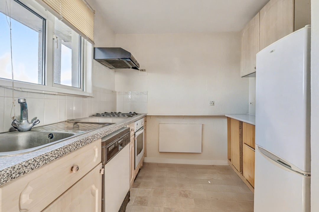 The kitchen comprises a range of eye and base level storage units complemented by the rolled edge work surfaces with inset sink and mixer tap. Tiled splashbacks. Inset hob under extractor. Space and plumbing for washing machine. Space for freestanding fridge-freezer. Double glazed window to front aspect.