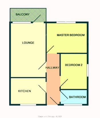 Double glazed window and door opening onto private balcony area. Space for a dining table and seated reception area.