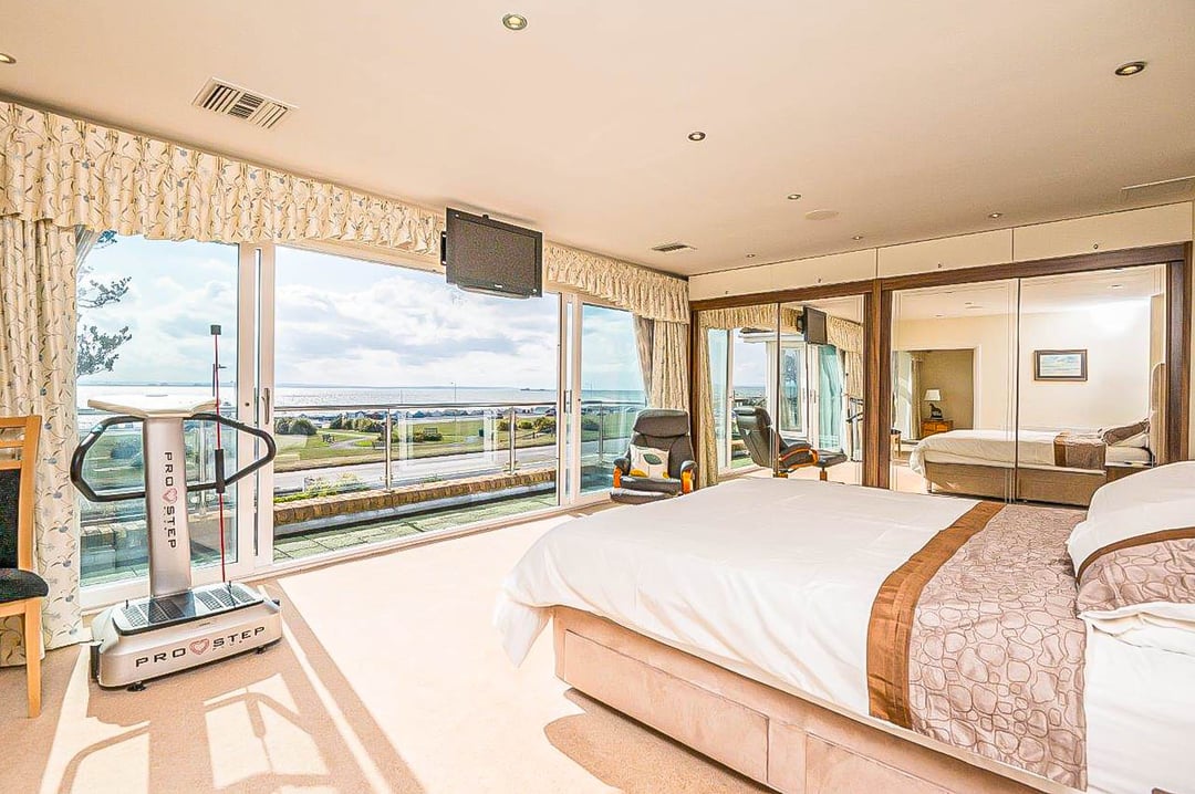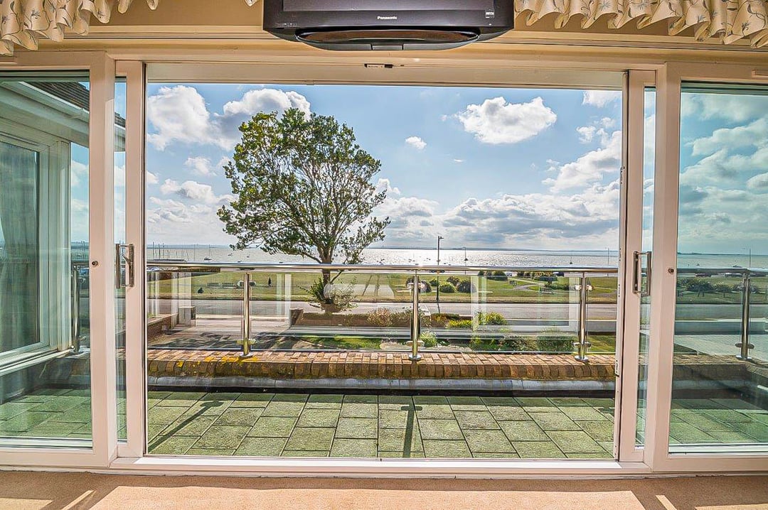 Double glazed window to side aspect. Sliding patio doors to front offering stunning sea views. Wall-mounted air conditioning unit.