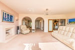 Double glazed window to front and double doors opening to the garden with uninterrupted sea views. Marble feature fireplace. Wall-mounted air conditioning. Archway through to: