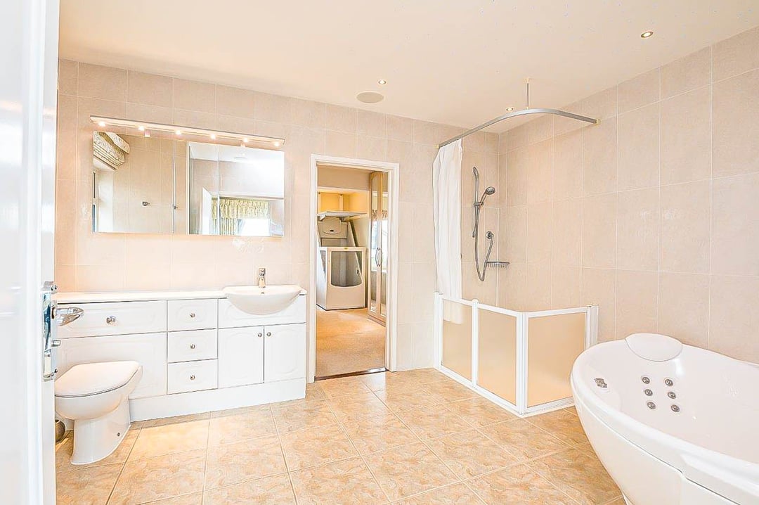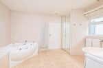 Obscure double glazed window to side aspect. Corner jacuzzi bath with mixer tap and shower attachment. Separate shower cubicle. Built-in double cupboard with shelving. Door giving access to Bedroom Four.
