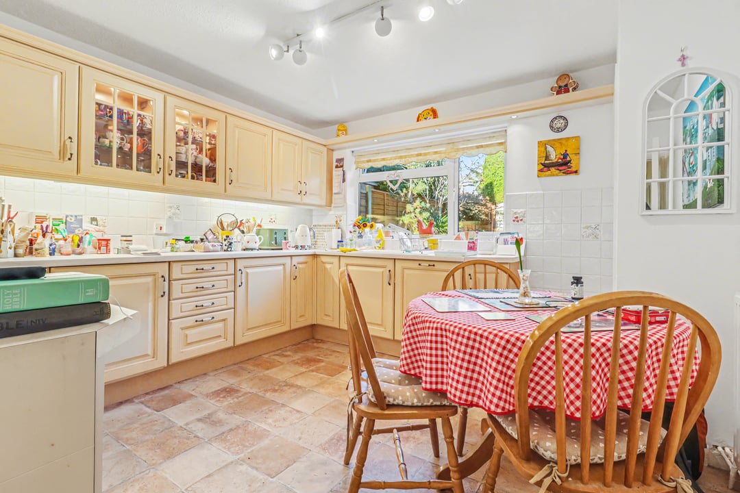The kitchen comprises a range of eye and base level storage units complemented by the rolled edge work surfaces with inset sink and mixer tap. Tiled splashbacks. Inset hob under extractor. Built-in single oven. Integrated low level fridge and separate freezer. Integrated dishwasher. Space for a breakfast table. Double glazed window to rear aspect. Door to dining room.