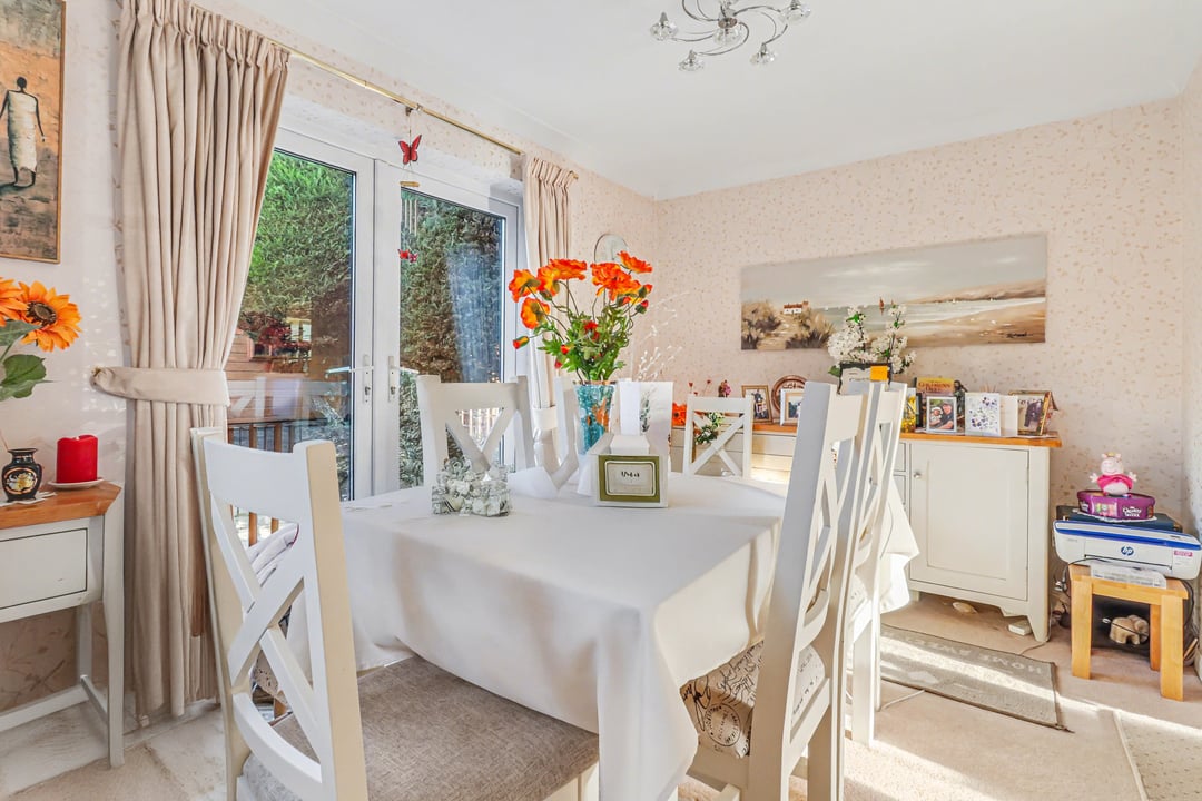 Double glazed window to side aspect. Space for a dining table ahead of double glazed French doors that open directly onto the garden; perfect for entertaining. Courtesy door to :