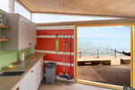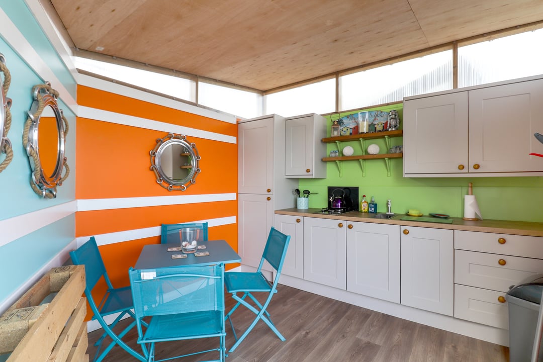The Beach Hut benefits from a range of full height, eye level and base storage units complemented by the wooden work surfaces with inset sink and mixer tap and inset gas stove (not mains connected). There is space for a small dining table ahead of secure double doors that open onto a raised reception area with space for additional seating. The Beach Hut also benefits from street (local authority) CCTV for additional security.