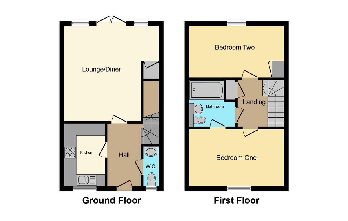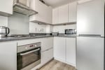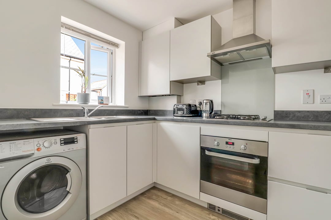 Comprises a range of eye and base level storage units complemented by the rolled edge work surfaces with inset sink and mixer tap. Matching upstands. Under unit courtesy lighting. Inset hob under extractor. Built-in single oven. Space and plumbing for washing machine. Space for freestanding fridge-freezer. Wall mounted boiler in unit. Amtico flooring. Double glazed window to front aspect.