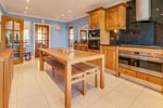 The kitchen comprises an extensive range of base, eye level and full height storage units complemented by the granite work surfaces with undermount sink and inset mixer tap. Inset hob under extractor hood. Granite upstands and splashbacks. Integrated appliances include wide oven, microwave oven, coffee machine, dishwasher and fridge-freezer. Space for a large breakfast table. Double glazed window to front aspect. Tiled floor. Door leads to :