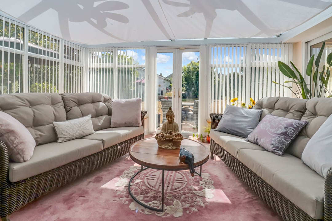 A double glazed unit with vaulted ceiling and tiled floors. Doors link with both the lounge and the dining room and also onto the rear garden; perfect for entertaining.