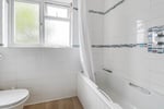 Obscure uPVC double glazed window to rear aspect. Suite comprises panelled bath with shower over, low level W.C. and vanity wash hand basin with storage drawer under. Heated towel rail. Fully tiled walls.