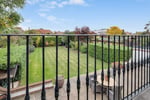 Feature circular window and double glazed French doors to rear aspect, opening onto the balcony with views over the landscaped garden. Doors lead to :