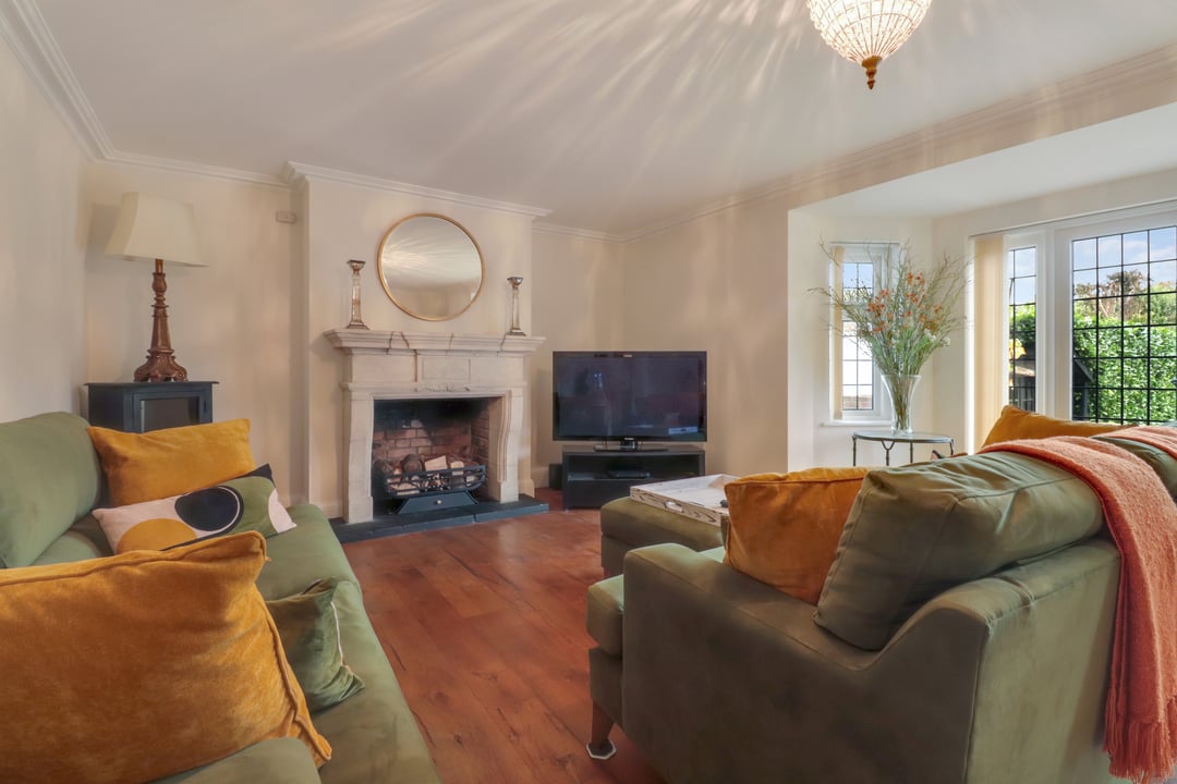 A large reception room with space for a family dining table and separate seated reception area. Double glazed bay to rear with French doors that open onto the patio; perfect for entertaining. Feature open fireplace with inset fire basket. Two sets of part glazed double doors link with both the kitchen / breakfast room and the front lounge.