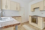 Work surface with space and plumbing beneath for washing machine. Space for additional appliances. Wall mounted boiler. Double glazed window to rear aspect. Door to :
