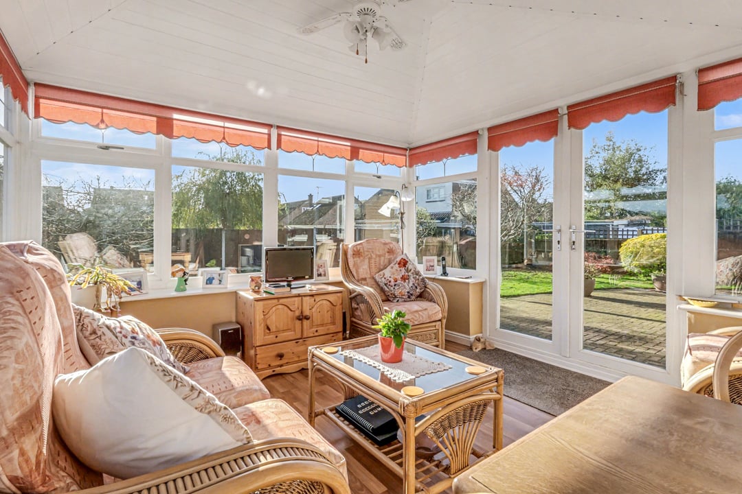 A double glazed unit on dwarf brick wall with vaulted ceiling. French doors open onto the rear garden, perfect for entertaining. Electric underfloor heating.