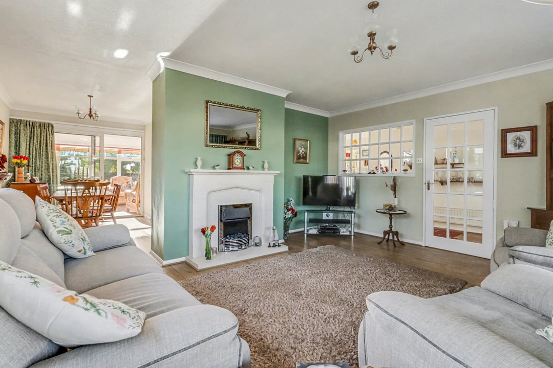 Space for a dining table ahead of double glazed sliding doors that link with the conservatory. Open arch leads to the kitchen.